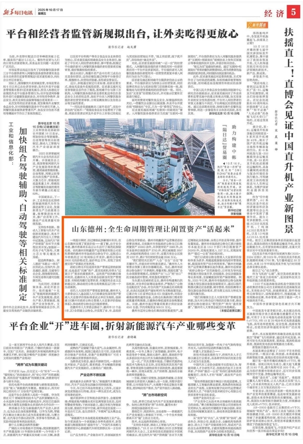 10月17日,新華通訊社主辦的全國性綜合新聞日報《新華每日電訊》,在5版【經(jīng)濟(jì)】版面刊發(fā)專題報道,重點聚焦德州市財鑫集團(tuán)創(chuàng)新打造市級政府公物倉管理運營新模式,積極爭取全國人大國有資產(chǎn)管理評價指標(biāo)體系試點。相關(guān)報道引發(fā)社會各界廣泛關(guān)注,報道原文如下: